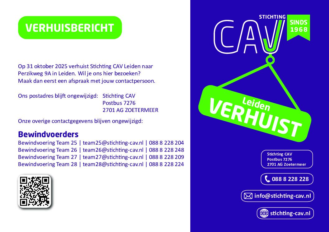Op 31 oktober verhuisde Stichting CAV Leiden naar een nieuwe locatie in Leiden.
